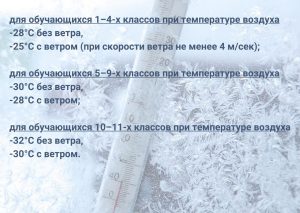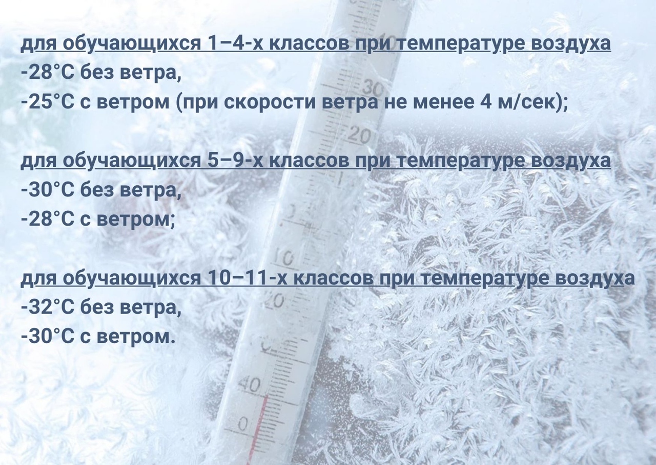 В связи с резким понижением температуры воздуха, дети могут не посещать образовательные организации в период сильных морозов: 4