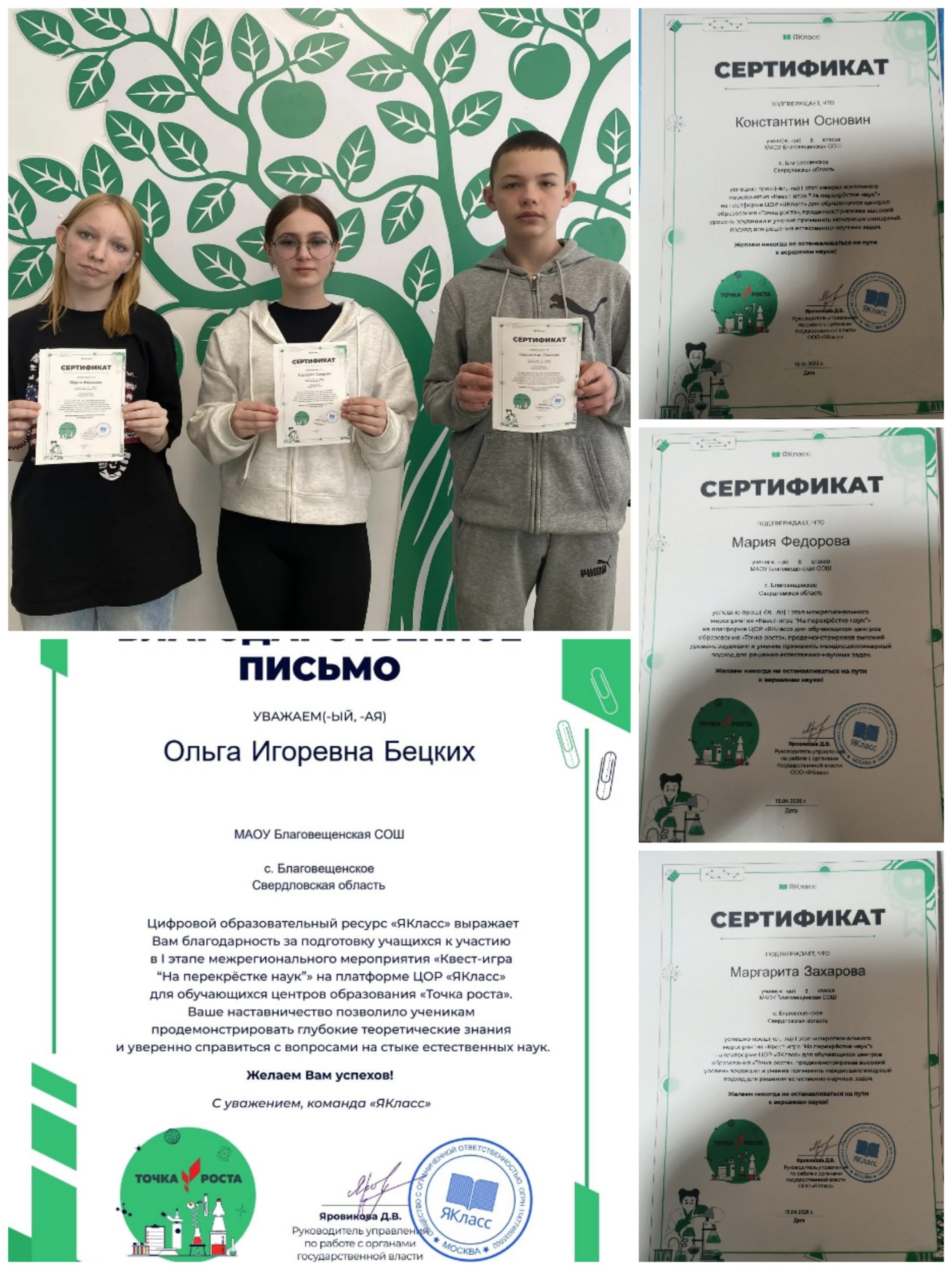 Все участники 1 этапа игры получили сертификаты. Учитель информатики Бецких Ольга Игоревна — благодарственное письмо.
